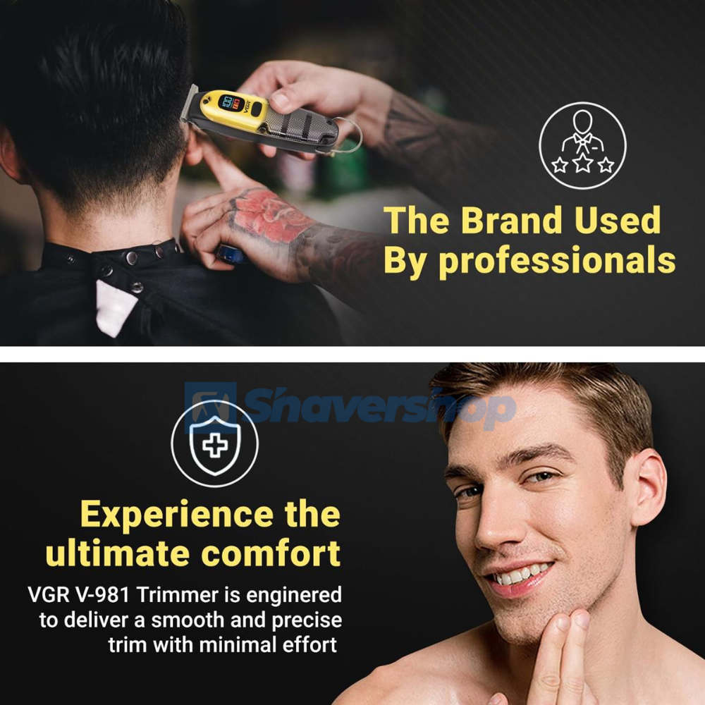 Professional VGR V-981 Hair Trimmer High-performance stainless steel blades, ergonomic design, and long battery life for precise, salon-quality grooming at home.